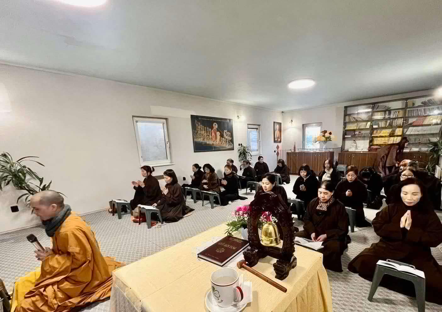 ĐÊM GIAO THỪA TẠI CHÙA VĨNH NGHIÊM PRAHA. Chánh điện đông kín người và kín niềm vui đón chào Năm mới